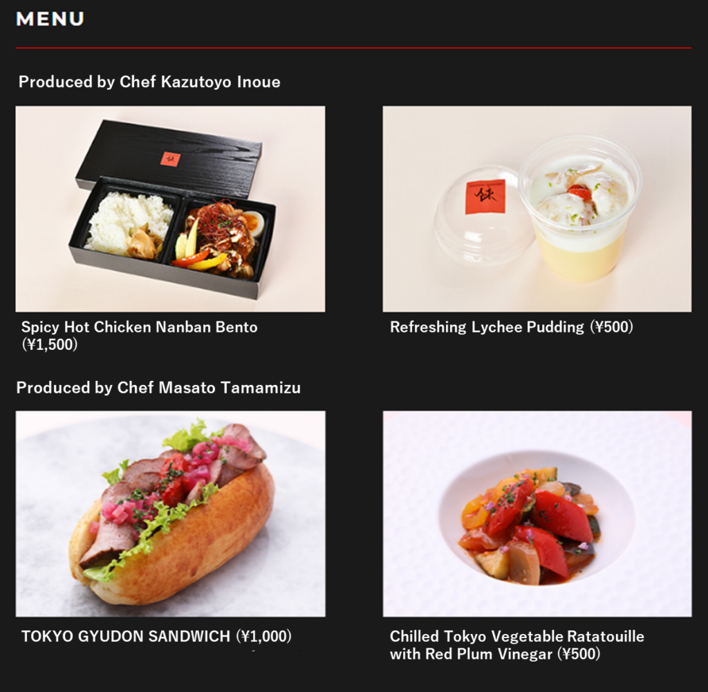 The boxed bento lunch has been prepared by Kazutoyo Inoue, head chef at Chinese style Szechwan Restaurant CHEN (Tokyo), who has arranged the traditional Japanese dish of “nanban” for the Tokyo palate. Two items are available for sale: “Spicy Hot Chicken Nanban Bento” (¥1,500) and “Refreshing Lychee Pudding” (¥500). Chef Inoue plans to use Tokyo GAP vegetables, an acronym that stands for “Good Agricultural Practices” in the “Spicy Hot Chicken Nanban Bento.” He will also shine a spotlight on glossy and shiny ingredients, such as paprika and sauces, and cooking techniques to express the concept of “light,” a key word for this event.
