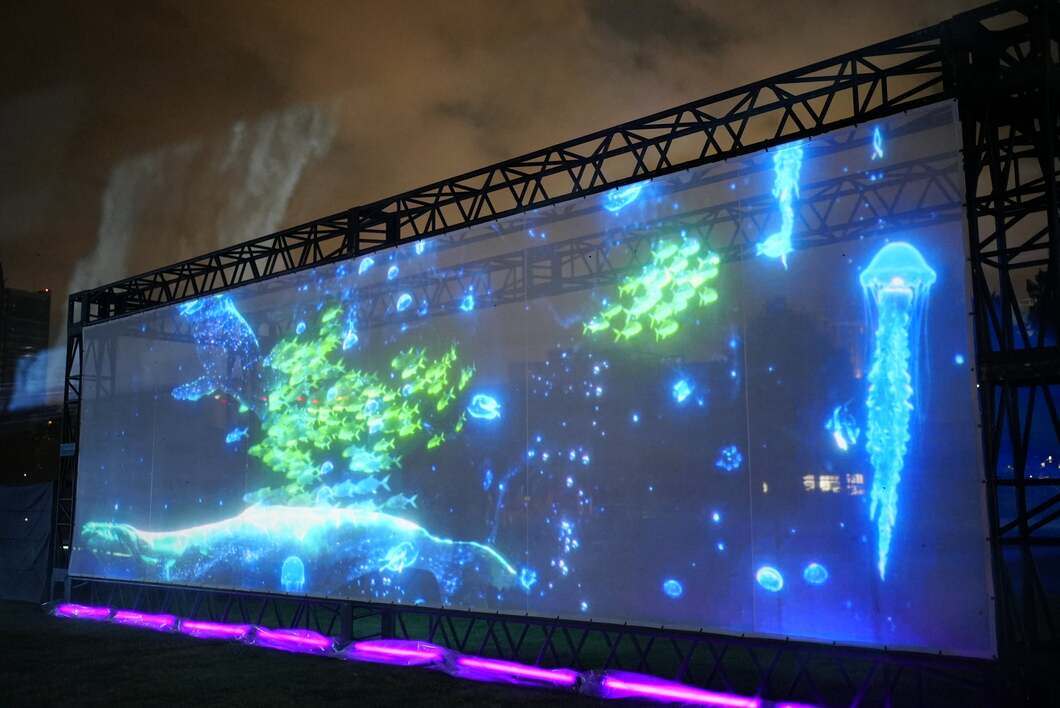 A sea of light appears, combining Japan-origin cutting-edge fiber beam technology (special lasers) and visual effects. Projected images of sea creatures create the sensation of swimming in the deep sea, and visitors can dive in to an immersive entertainment experience full of light and sound.